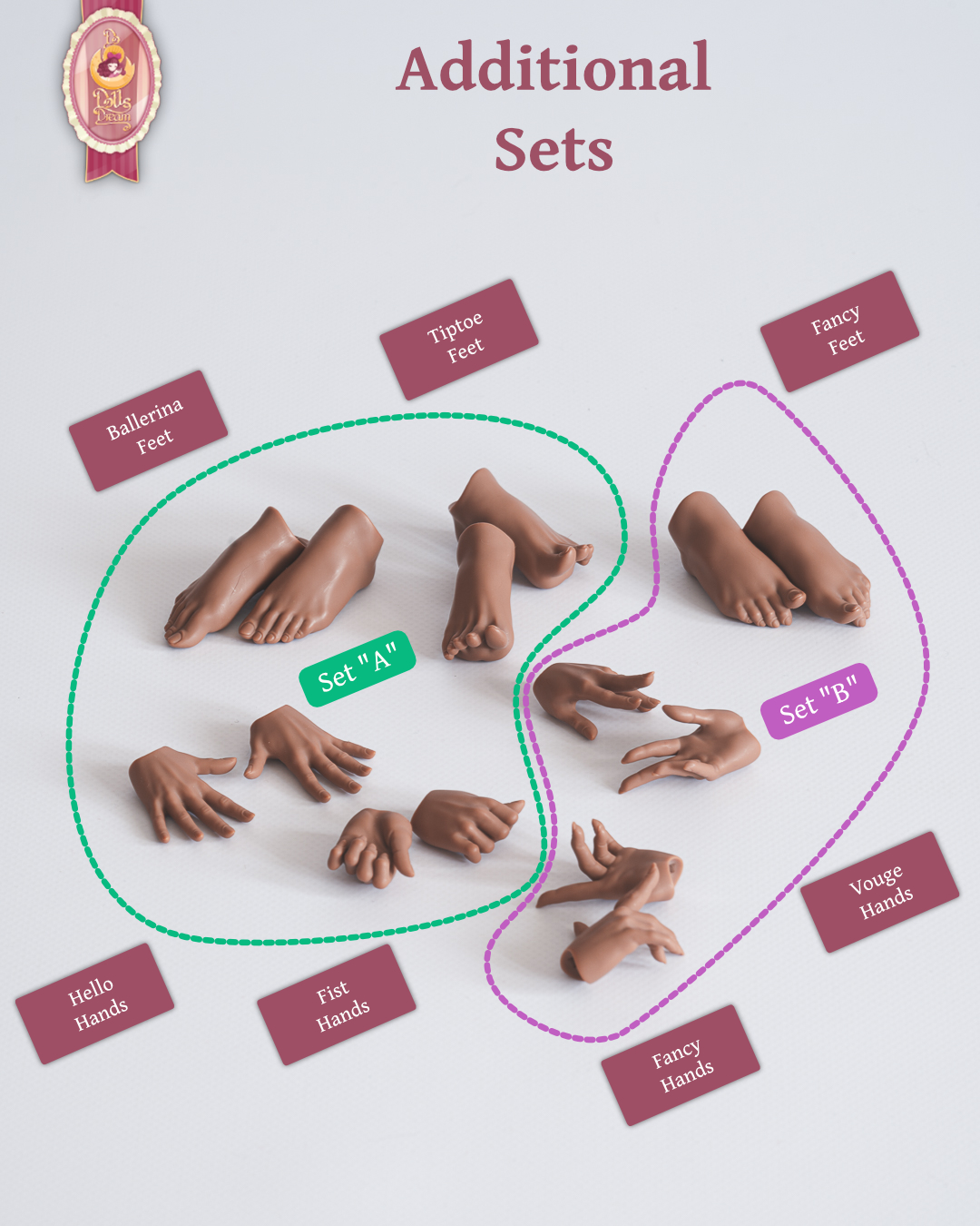 5. “Set A” extra hands and feet set (must be the same color as full doll)? (+180 EUR (includes 50 EUR deposit)):